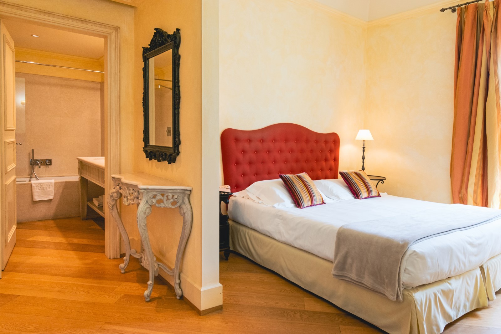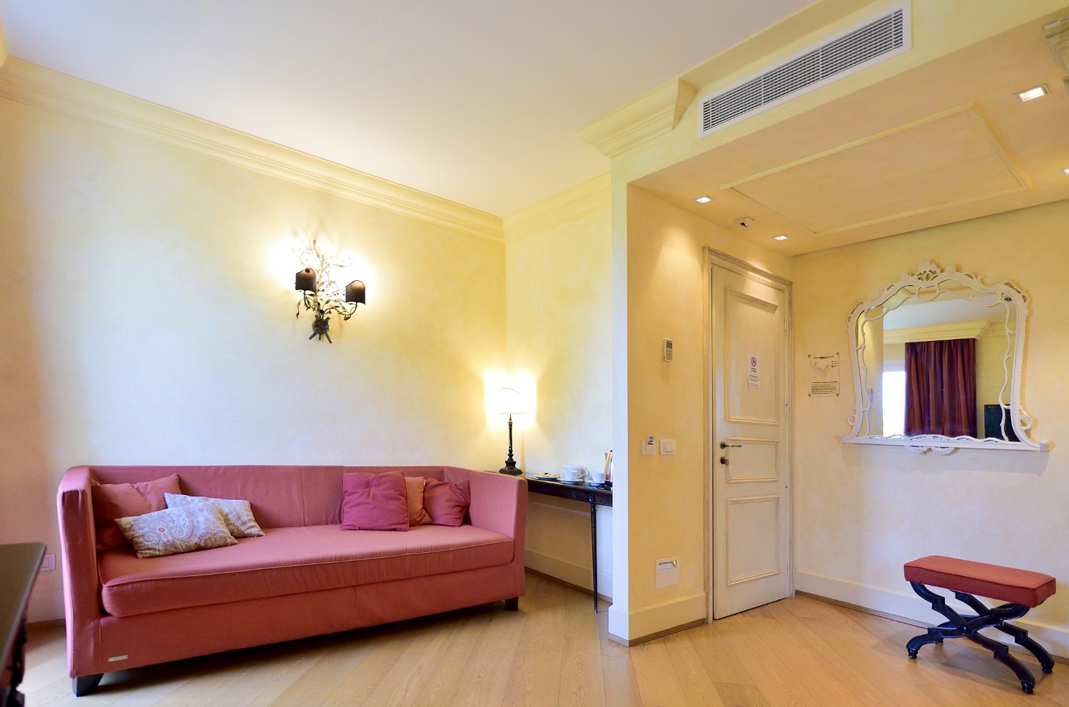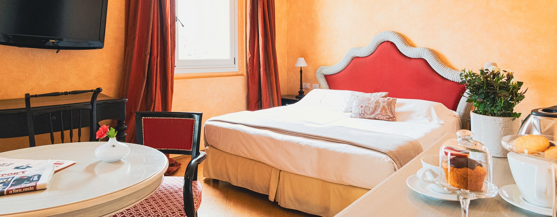 Ogni ambiente è studiato con attenzione ai dettagli, la scelta dei colori e dei tessuti permette all'ospite di assaporare un giusto mix di sensazioni: colori caldi e chiari alle pareti e nella biancheria da letto, in modo da indurre il giusto relax, e tocchi di energia nei tendaggi rossi e in alcuni mobili in legno laccato nero.