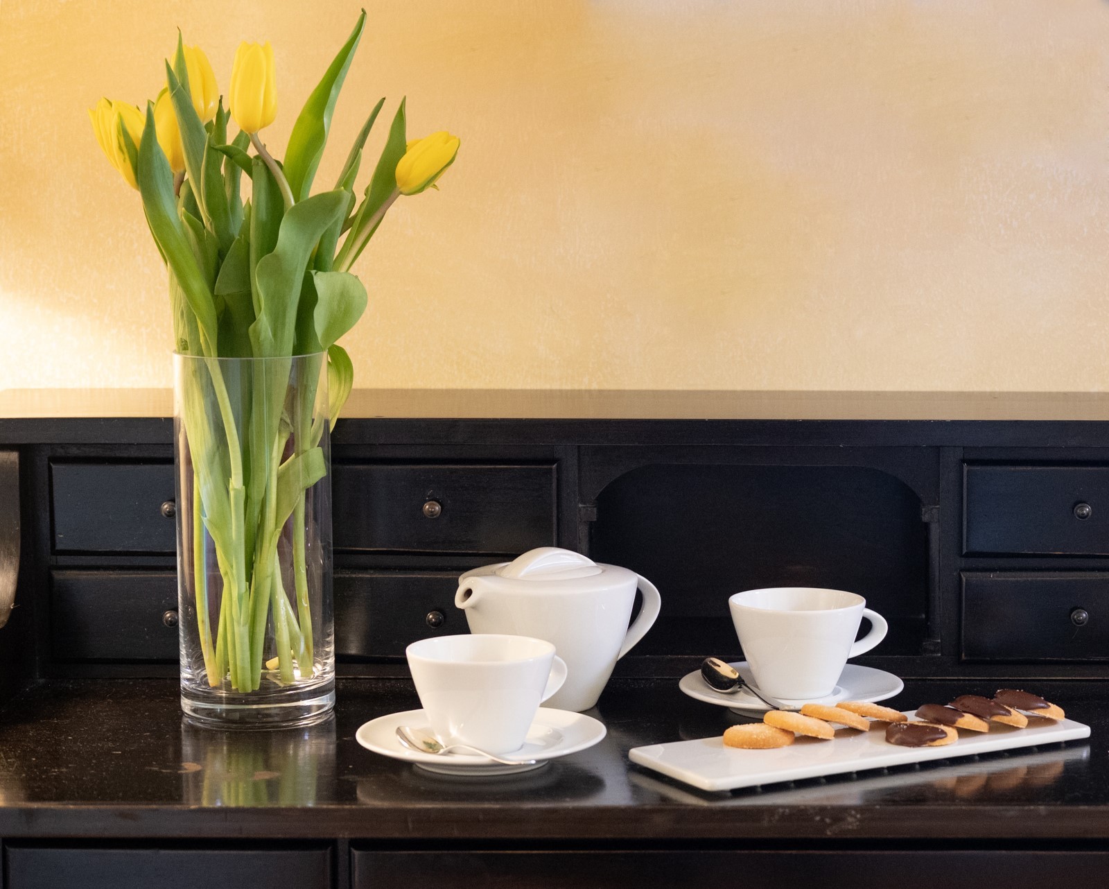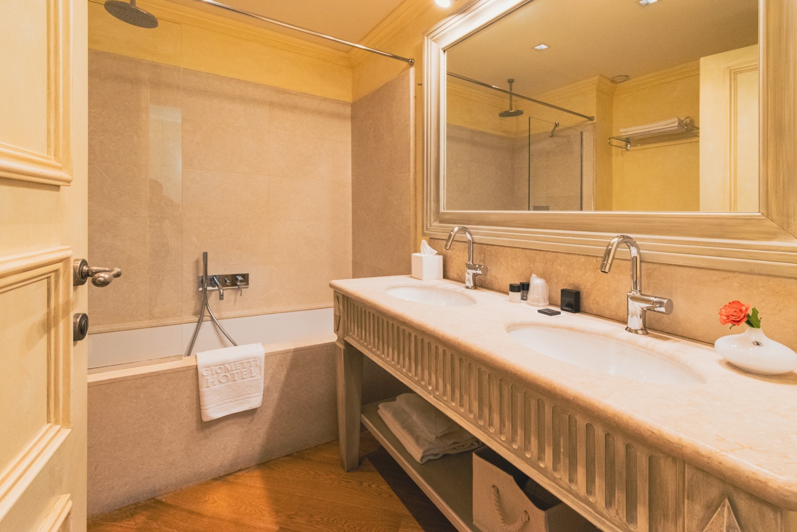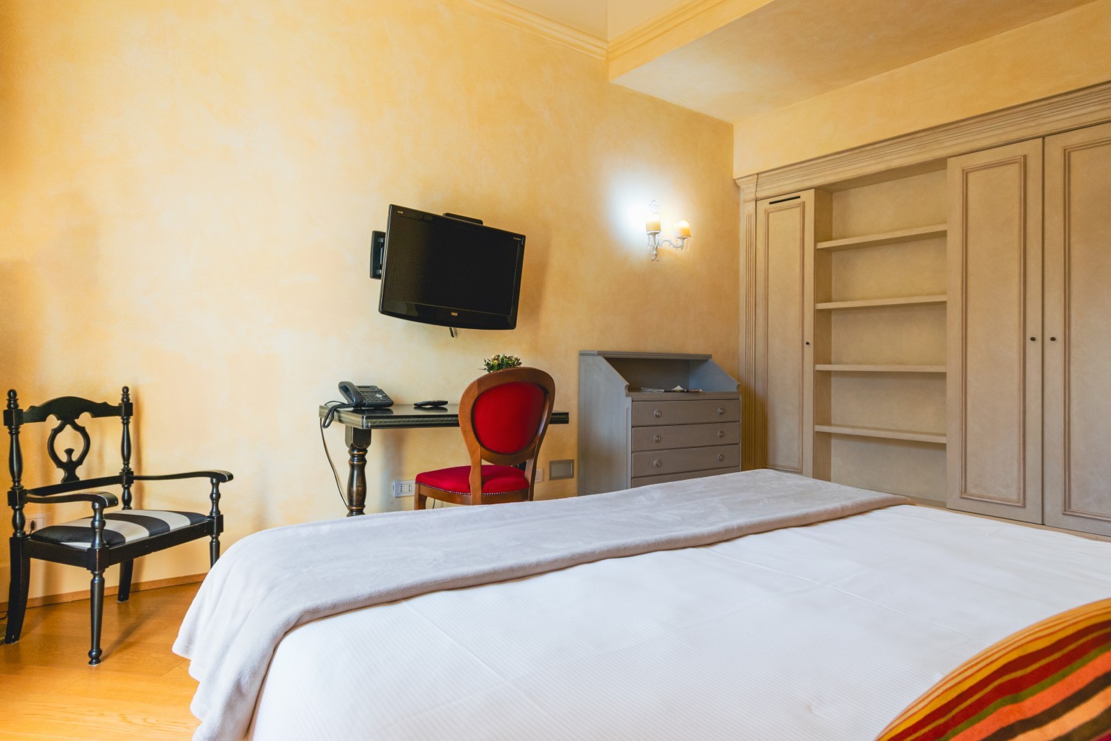Ogni ambiente è studiato con attenzione ai dettagli, la scelta dei colori e dei tessuti permette all'ospite di assaporare un giusto mix di sensazioni: colori caldi e chiari alle pareti e nella biancheria da letto, in modo da indurre il giusto relax, e tocchi di energia nei tendaggi rossi e in alcuni mobili in legno laccato nero.