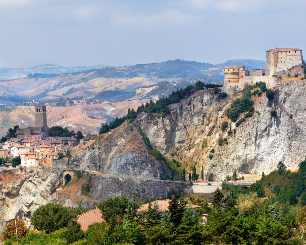 Nella Val Marecchia, a circa 30 km da Rimini su un enorme masso roccioso, raggiungibile per un'unica strada tagliata nella roccia, si erge San Leo. Sulla punta più alta dello sperone roccioso sorge la Rocca, inespugnabile fortezza che fu ampliata ed intorno al 1600 adattata a carcere con condannati illustri quali il Conte di Cagliostro e Felice Orsini. Il panorama che si gode da San Leo è uno dei più belli e caratteristici della regione: la vista spazia sui monti circostanti e lungo la vallata del Marecchia fino al mare.